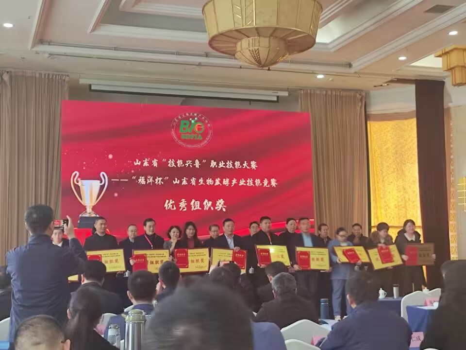 大會對《2022年山東省“技能興魯”職業(yè)技能大賽——“福洋杯”山東省生物發(fā)酵產(chǎn)業(yè)職業(yè)技能競賽》獲獎的29個優(yōu)秀組織單位、25名優(yōu)秀指導老師進行表彰并頒發(fā)證書和獎牌,其中天泰榮獲《優(yōu)秀組織單位》獎。