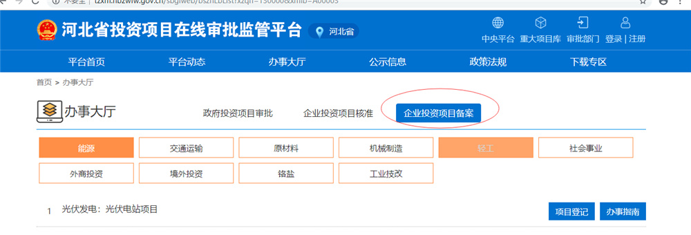 1.備案登錄“全國(guó)投資項(xiàng)目在線審批監(jiān)管平臺(tái)http://www.tzxm.gov.cn/