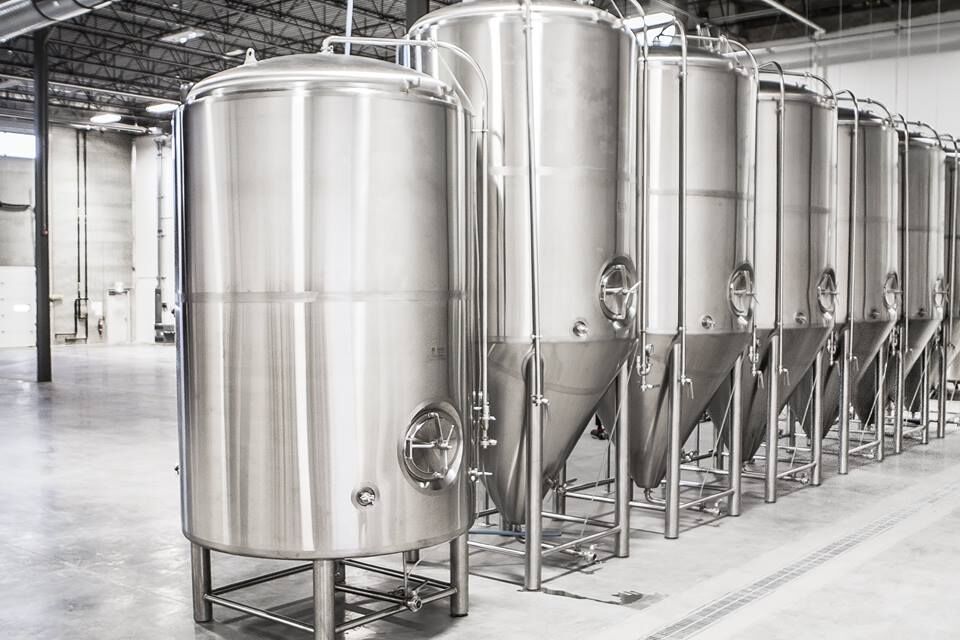 這些不銹鋼罐是發(fā)酵容器,用于在過濾、碳酸化和包裝之前發(fā)酵和調(diào)節(jié)啤酒。